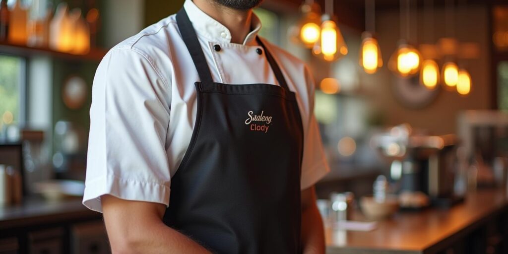 We offer chef shirts featuring restaurant emblems, designed to be both stylish and comfortable.